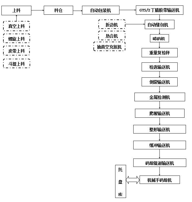 適用范圍 氯化鉀、氯化鈣、片堿、苯酐、抗氧化劑、電池材料、氧化鋅、氫氧化鋁、高氯酸鉀、醫(yī)藥中間體、農(nóng)藥等粉狀、片狀物料的包裝生產(chǎn)線